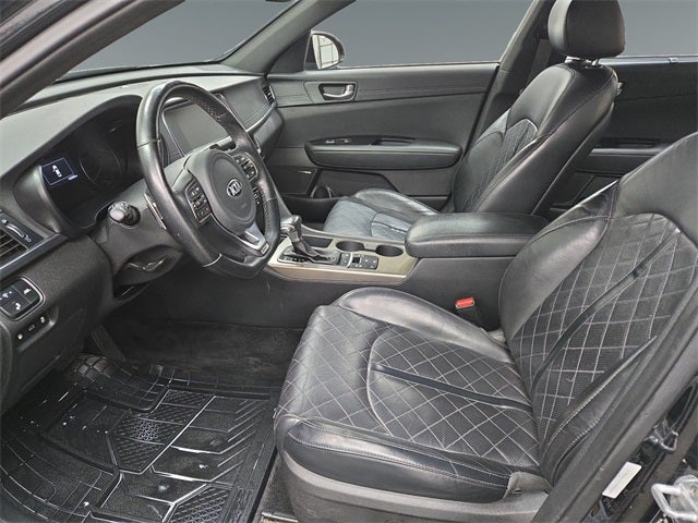 This Kia Optima is well equipped and includes these key features, Collision Avoidance System, Adaptive Cruise Control, Lane Keeping Assist, Blind-Spot Detection, Rear Cross Traffic Alert, Front and Rear Heated Leather Seats, Navigation System, Panoramic Sunroof/Moonroof, Symmetrical All Wheel Drive, Apple CarPlay & Android Auto, Autonomous Emergency Braking (AEB), Exterior Parking Camera Rear, Front dual zone A/C, Fully automatic headlights, Heated & Ventilated Front Bucket Seats, Heated Leather-Wrapped D-Shaped Steering Wheel, Memory seat, Outside temperature display, Power driver seat, Power passenger seat, Radio: AM/FM/MP3/SiriusXM Premium Audio System, Remote keyless entry, Security system, Steering wheel mounted audio controls, Surround View Monitor, Trip computer, Wheels: 7.5J x 18 Alloy w/Chrome Machine Finish.