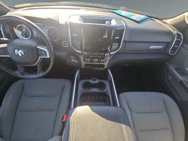 CARFAX One-Owner. This Ram 1500 is well equipped and includes these key features, One Owner, Blind-Spot Detection, Heated Seats, Navigation System, 4 Wheel Drive, 115V Auxiliary Power Outlet, 33 Gallon Fuel Tank, 400W Inverter, 4G LTE Wi-Fi Hot Spot, 8.4 Touchscreen Display, 9 Amplified Speakers w/Subwoofer, Air Conditioning ATC w/Dual Zone Control, Big Horn Level 2 Equipment Group (DISC), Bluetooth® Handsfree Phone & Audio, Class IV Receiver Hitch, Electric Shift-On-Demand Transfer Case, Front Fog Lamps, Fully automatic headlights, GPS Navigation, Heated Steering Wheel, Integrated Voice Command w/Bluetooth®, Outside temperature display, ParkSense Front/Rear Park Assist w/Stop, ParkView Rear Back-Up Camera, Power 2-Way Driver Lumbar Adjust, Power 8-Way Driver Seat, Power Adjustable Pedals, Power-Folding Mirrors, Radio: Uconnect 5 Nav w/8.4 Display, Rear Power Sliding Window, Rear Window Defroster, Remote keyless entry, Remote Start System, Security Alarm, SiriusXM Satellite Radio, Steering wheel mounted audio controls, Trip computer, Universal Garage Door Opener, Wheel to Wheel Side Steps, Wheels: 18 x 8 Cast-Aluminum Painted.